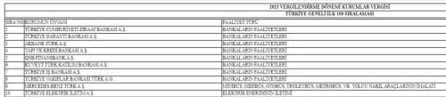 Gelir İdaresi Başkanlığı 2023 Yılı Kurumları Vergisi Beyannamesi veren kurumlarla ilgilide ilk yüz firmayı açıkladı.