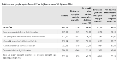 TÜİK: Tarım ürünleri üretici fiyat endeksi açıklandı! (08/2024)